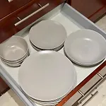 アパ-トメントには,電子レンジ,電子レンジ とコ-ヒ-・紅茶メ-カ-が備わる器具でいっぱいの台所があります.